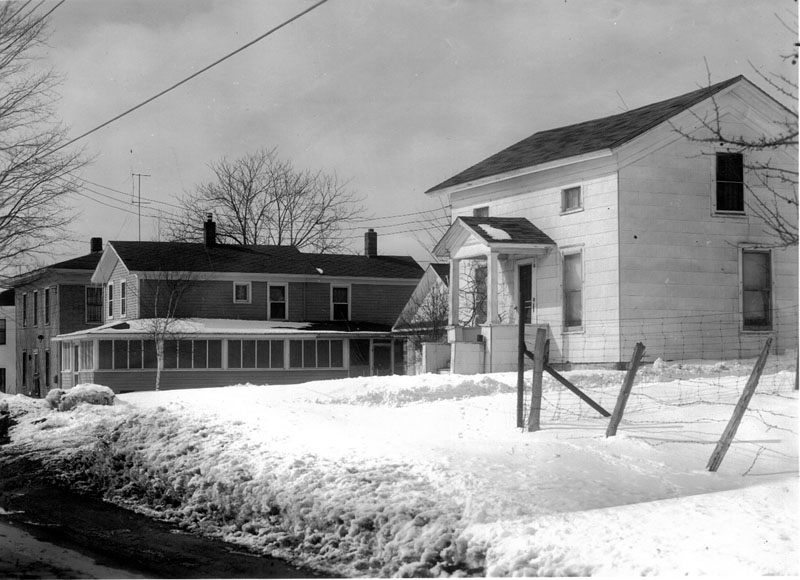 The house on the right (Salisbury Street) was owned by Charles Williams and his wife. It was moved across the street for the construction of Rt. 81 and turned 180 degrees. The next two houses, owned by Hogan and Lortie were both removed for construction of Route 81. Gilbert “Gibb” Williams, their son, was part owner of T. C. G. in Lacona (Thrifty Consumer Gas) which sold gasoline, oils, hardware and sporting goods) Today the house has been totally remodeled.