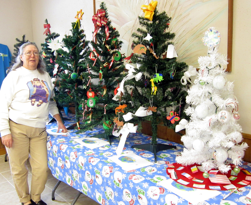 This past week the girls enjoyed a party at the soup kitchen on Salisbury Street to celebrate another successful year and pick up trees. The theme this year was Christmas around the world and the trees were decorated with wooden candles, animals from around the world, flags of different countries and Christmas bulbs decorated with world maps. The trees will be distributed to a needy family or elderly person in time for Christmas Day. Contact Rae Allen for more information 387-3666 and to suggest a person or family in need of Christmas cheer.